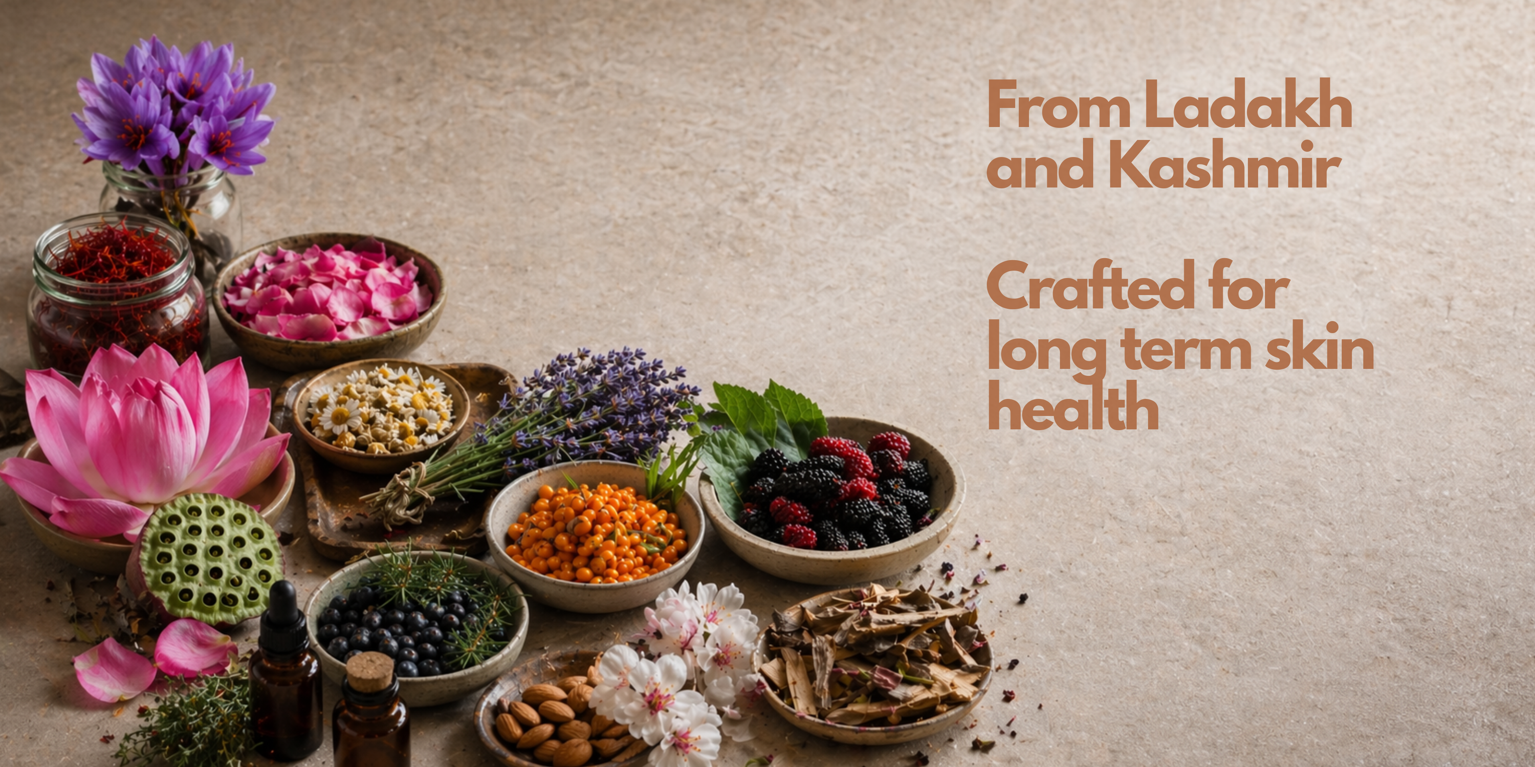 Crafted by experienced cosmetic scientists, our formulations blend traditional Kashmiri and Ladakhi botanicals with skin science to support barrier health, hydration, resilience, and lasting radiance.